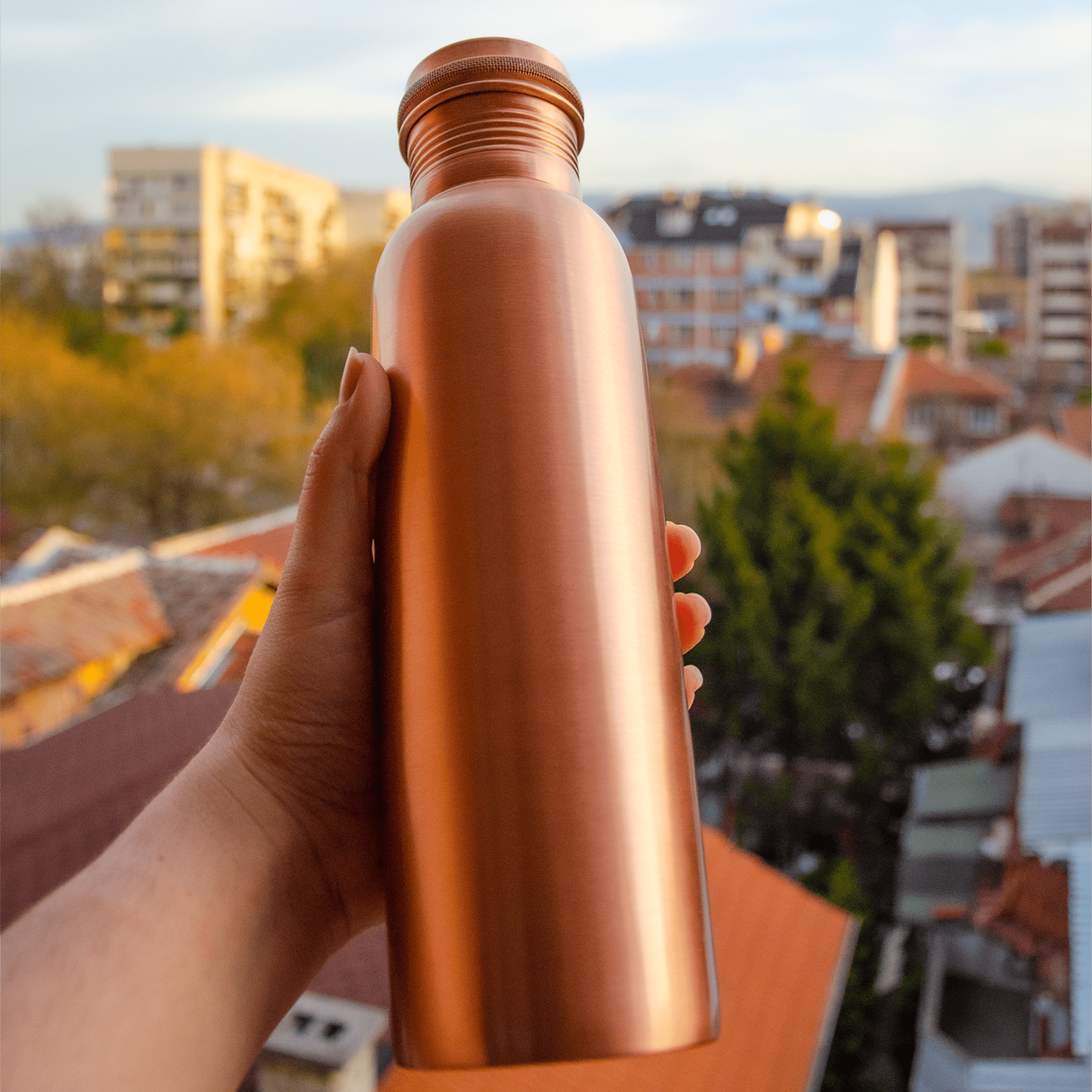 Тази бутилка от чиста мед е елегантна и привличаща вниманието със своя семпъл, но елегантен дизайн. Тя е лека и компактна, което Ви улеснява да носите вода навсякъде. Вземете я на пътувания, разходки в парка, планински преходи, на работа или просто я използвайте у дома. Тази бутилка не само е чудесен съхранител на здравословна вода, но също така и страхотна завръзка на разговори!