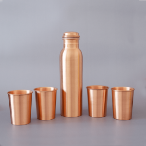 Smooth Copper Bottle and Glasses Set 3 pcs